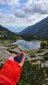 Този преход беше по-различен. Идеята ми беше да тръгна още преди изгрев и да го посрещна някъде около хижа Вихрен. Стигнах до Муратовото езеро навреме и именно там успях да наблюдавам първите слънчеви лъчи, които оцветиха върховете на Пирин в златисто. Закусих с гледка – шепа боровинки, набрани от едно мое тайно местенце, което посещавам от години. Толкова са едри и винаги има много – сигурно съм един от малкото, които ходят там.